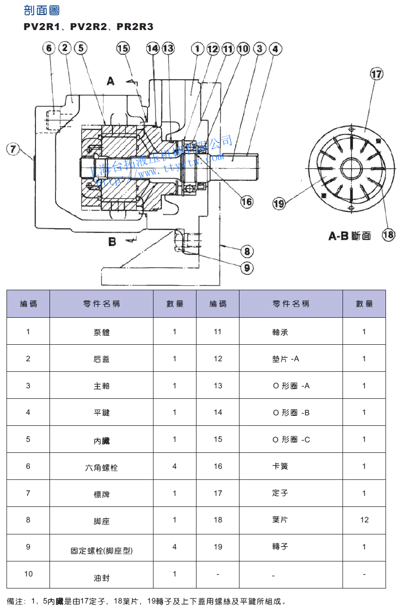 cm3/rev使用壓力MPa 容許轉速rpm 配管尺寸(PT) 重量kg 額定 最高 最大 最小 出口 入口 法蘭型 腳座式 PV2R2-26 25.4 21.0 17.5 1800 600 1 1/4" 3/4" 19.0 23.3 PV2R2-33 33.0 PV2R2-41 41.3 PV2R2-47 47.2 PV2R2-53 52.5 PV2R2-59 58.2 PV2R2-65 64.7 PV2R2-75 74.5 高壓定量葉片泵PV2R2剖面圖