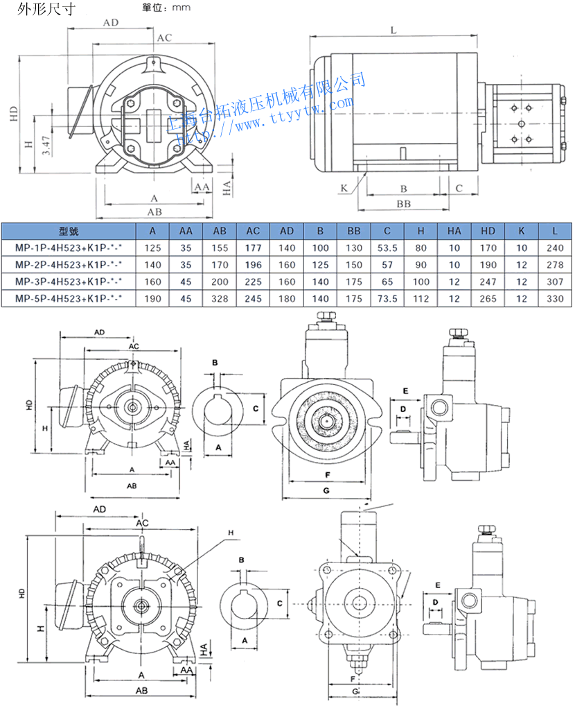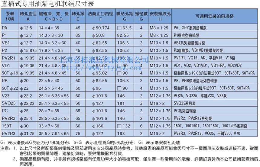 (1HP、2HP、3HP、5HP)K1P MP-*P-4H523+SGP1A 11~19.5 SGP1A MP-*P-4H523+PLS 22~32 PLS 直插式專用油泵電機(jī)連結(jié)尺寸表