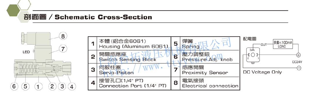 壓力繼電器PSB一般型,本產(chǎn)品為新型無(wú)接點(diǎn)式本體,24VDC電晶體感應(yīng)開(kāi)關(guān),高負(fù)載。