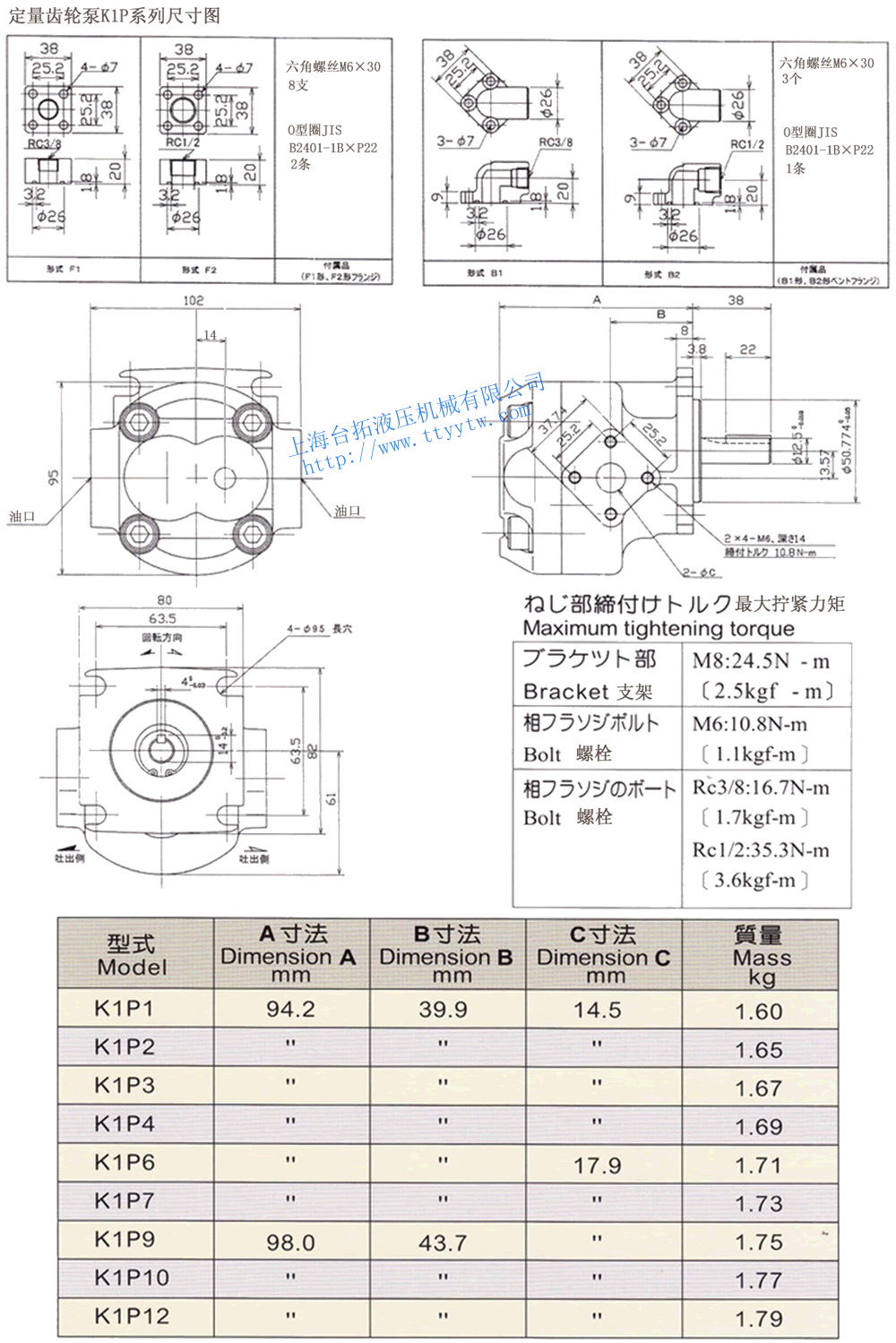 L:逆時針方向1:平鍵 1 A 定量齒輪泵K1P系列規(guī)格表