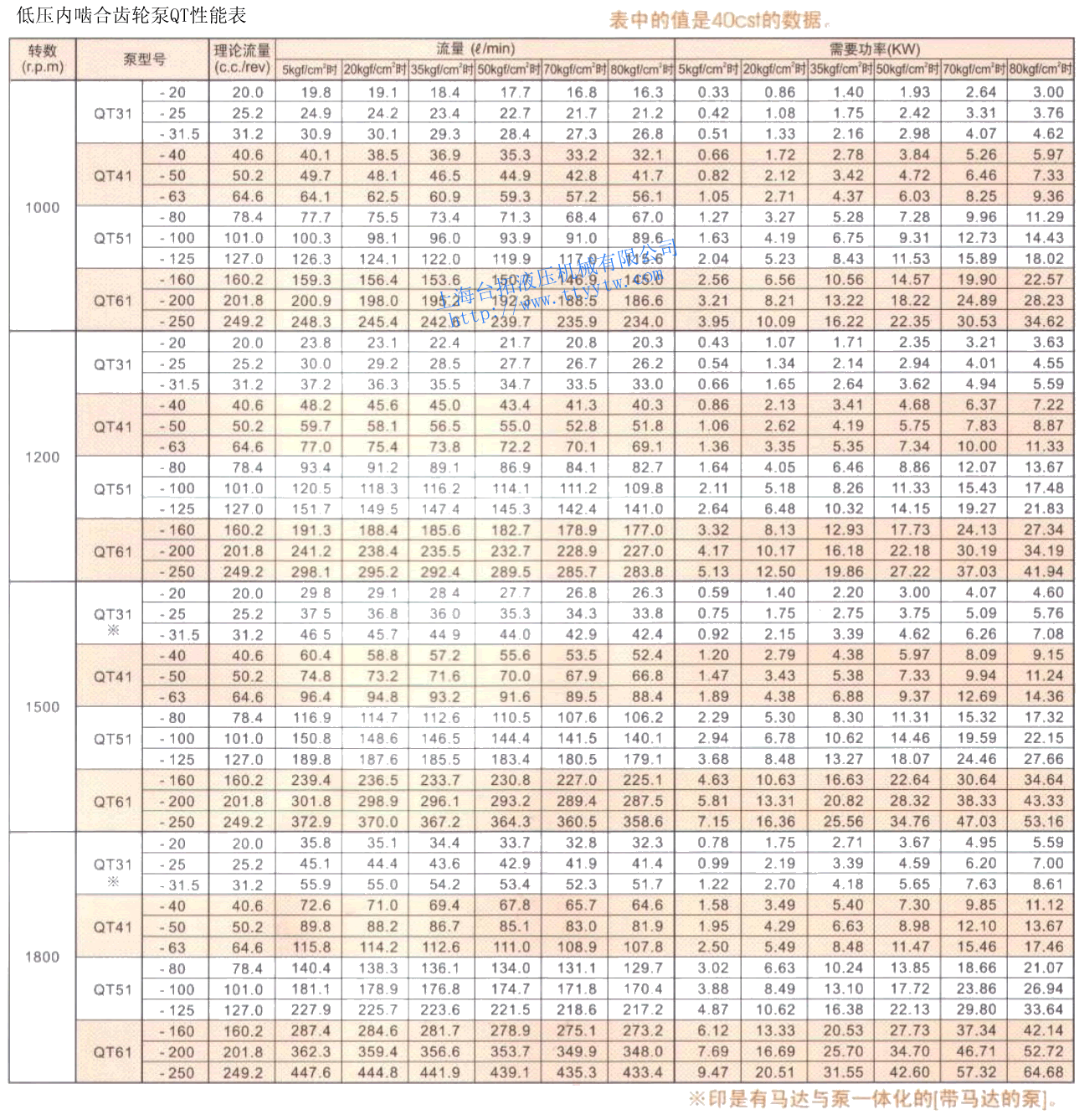 低壓內嚙合齒輪泵QT規格表