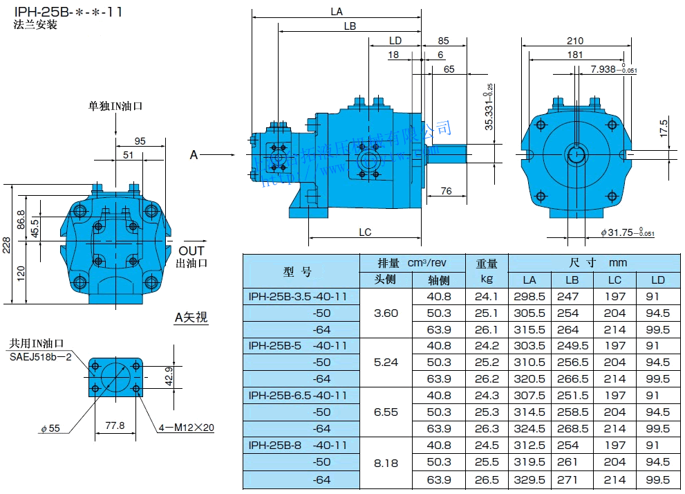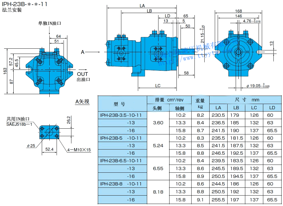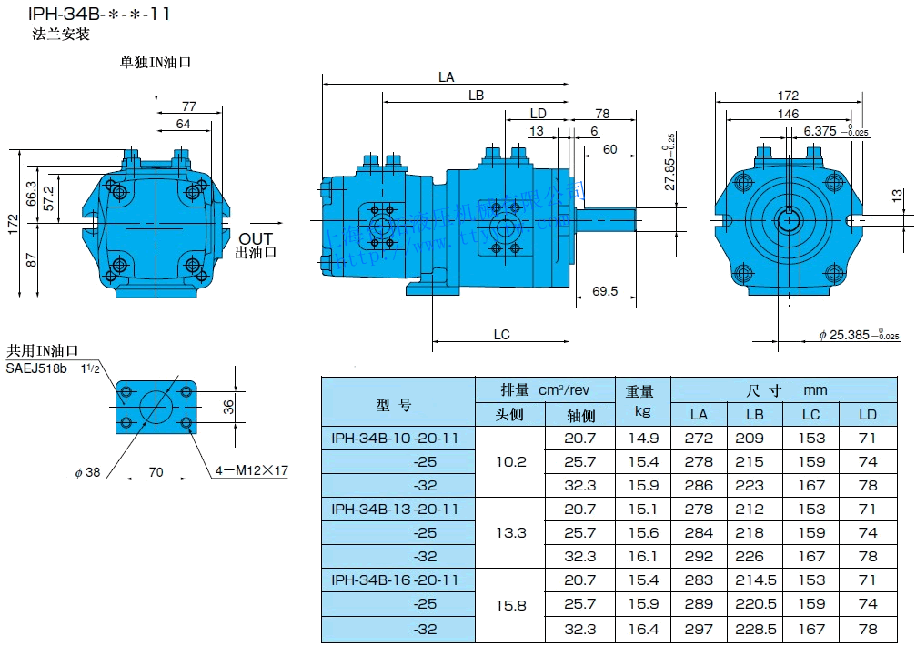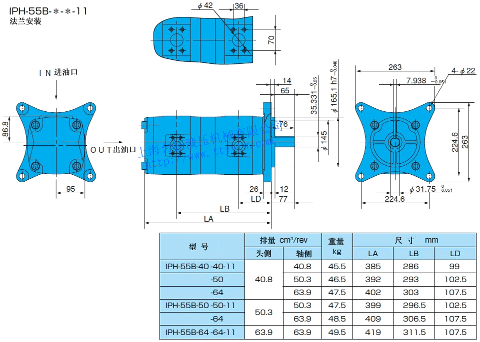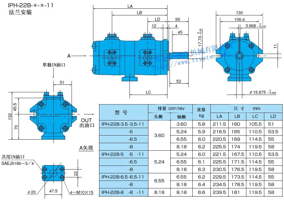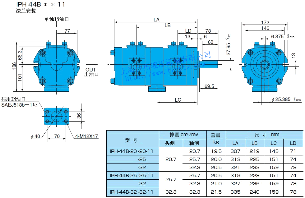EE:帶熔接法蘭盤組件(使用單獨in油口)11 雙聯(lián)內(nèi)嚙合齒輪泵IPH規(guī)格表