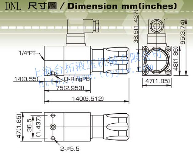 型 號 壓力調整范圍 bar 最高壓力 bar 重量Kg DNL-050K-21B 6~50 200 1.0 DNL-100K-21B 15~100 300 1.0 DNL-200K-21B 30~200 300 1.0 DNL-280K-21B 40~280 350 1.0 DNL-400K-21B 50~400 450 1.0 壓力繼電器DNL剖面圖