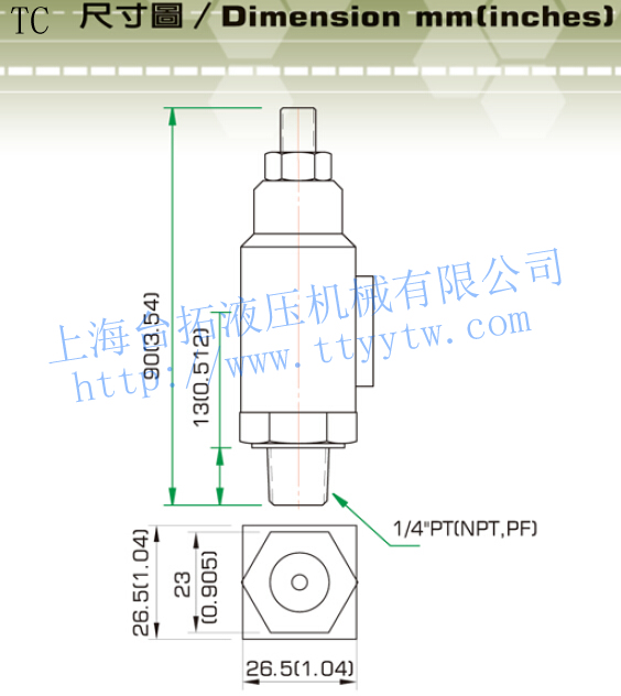 1、壓力繼電器TC一般型小型壓力開關,微動開關容量,牙口為1/4"PT(RC),1/4"NPT,1/4"PF(G)三種。