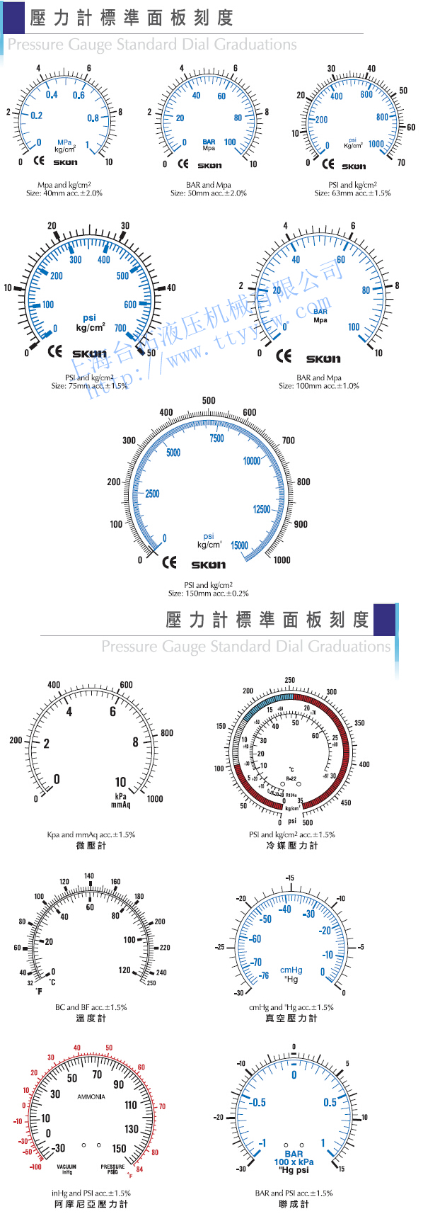 臺灣協(xié)鋼SKON壓力表標準面板刻度