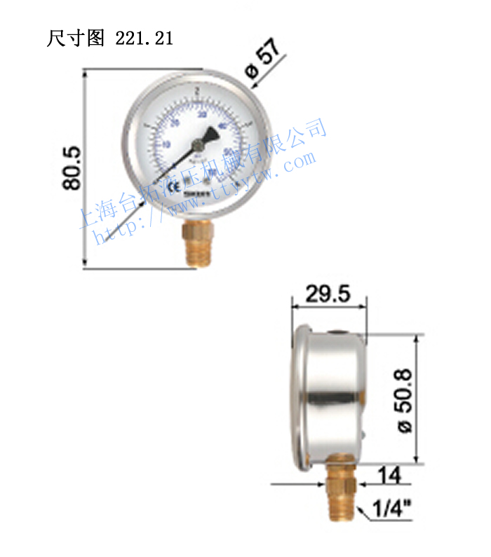 臺(tái)灣協(xié)鋼SKON充油式壓力表221.21尺寸圖