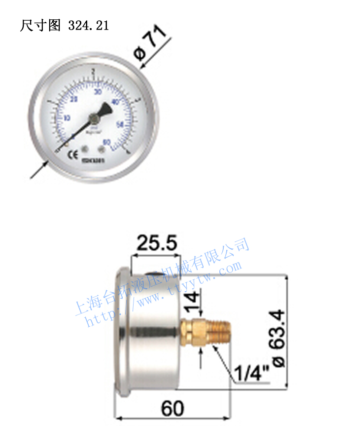 臺灣協鋼SKON充油式壓力表324.21尺寸圖