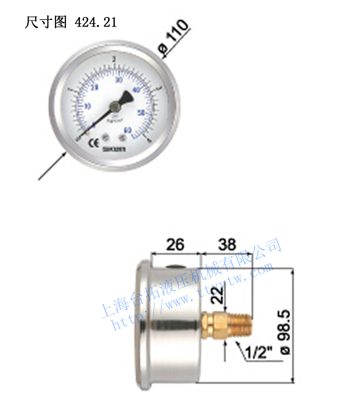 臺灣協鋼SKON充油式壓力表424.21尺寸圖