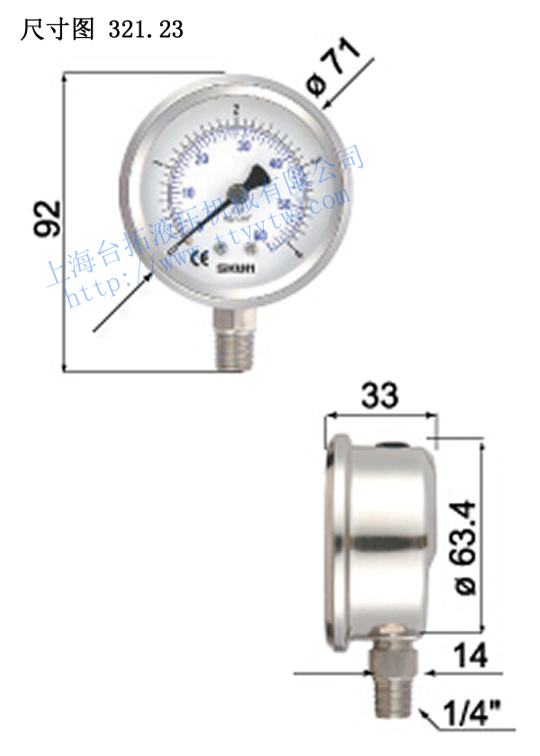 臺灣協(xié)鋼SKON充油式不銹鋼壓力表321.23尺寸圖