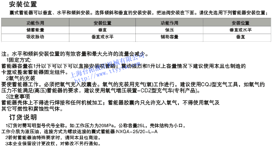 NXQ - -25 L /F -* 系列號(hào)碼 規(guī)格 容量 壓力 安裝型式 用途 囊式蓄能器 A:小口