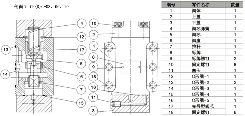 液控單向閥CP(D)G-03,06,10剖面圖