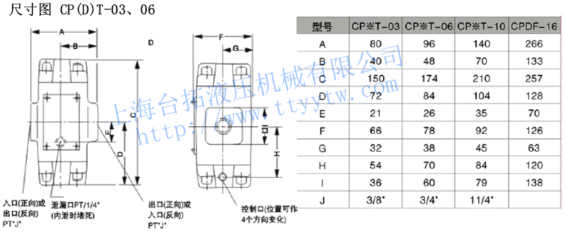 型號 額定流量 ?/min 最高使用壓力 MPa 開啟壓力 MPa 重量 管式(法蘭式) 板式 管式(法蘭式) 板式 CPT-03 CP*G-03 50 25 A1:0.04