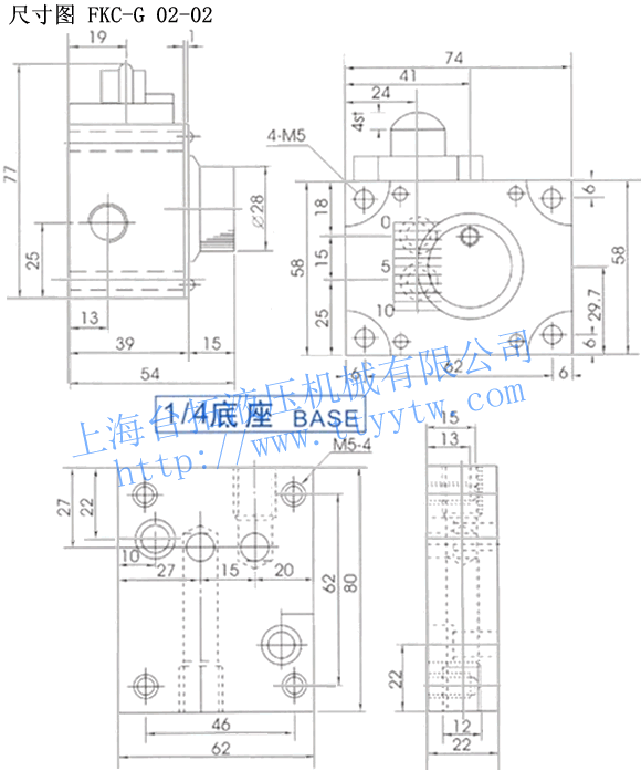 型 號(hào) 流量調(diào)整范圍?/min 最高使用壓力kg/cm2 自由流量?/min 接線口徑 FKC-G 02001-02 0.1~1 70 20 PT 1/4 FKC-G 02002-02 0.1~2 FKC-G 02004-02 0.1~4 調(diào)速閥FKC-G 02-02尺寸圖