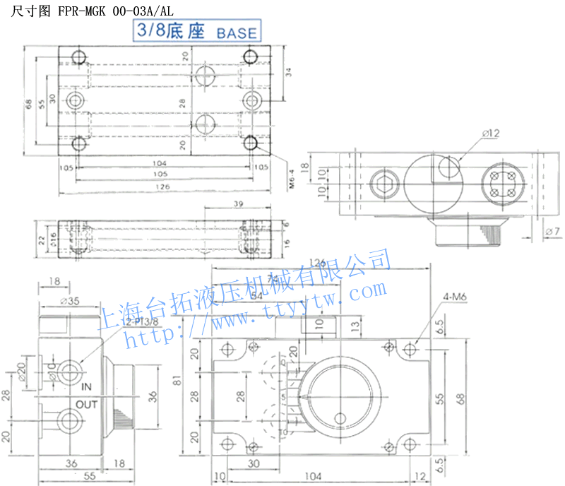 型 號 流量調整范圍?/min 最高使用壓力kg/cm2 自由流量?/min 接線口徑 FPR-MGK 002-03A 0.1~2 70 30 PT 3/8 FPR-MGK 004-03A 0.1~4 FPR-MGK 008-03A 0.1~8 調速閥FPR-MGK 00-03A/03AL尺寸圖