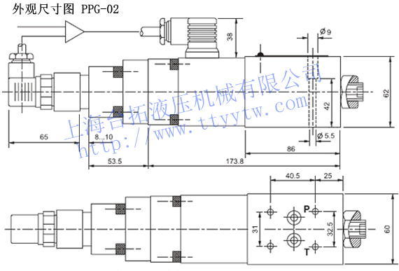 超高響應電液比例壓力閥PPG-02外觀尺寸圖