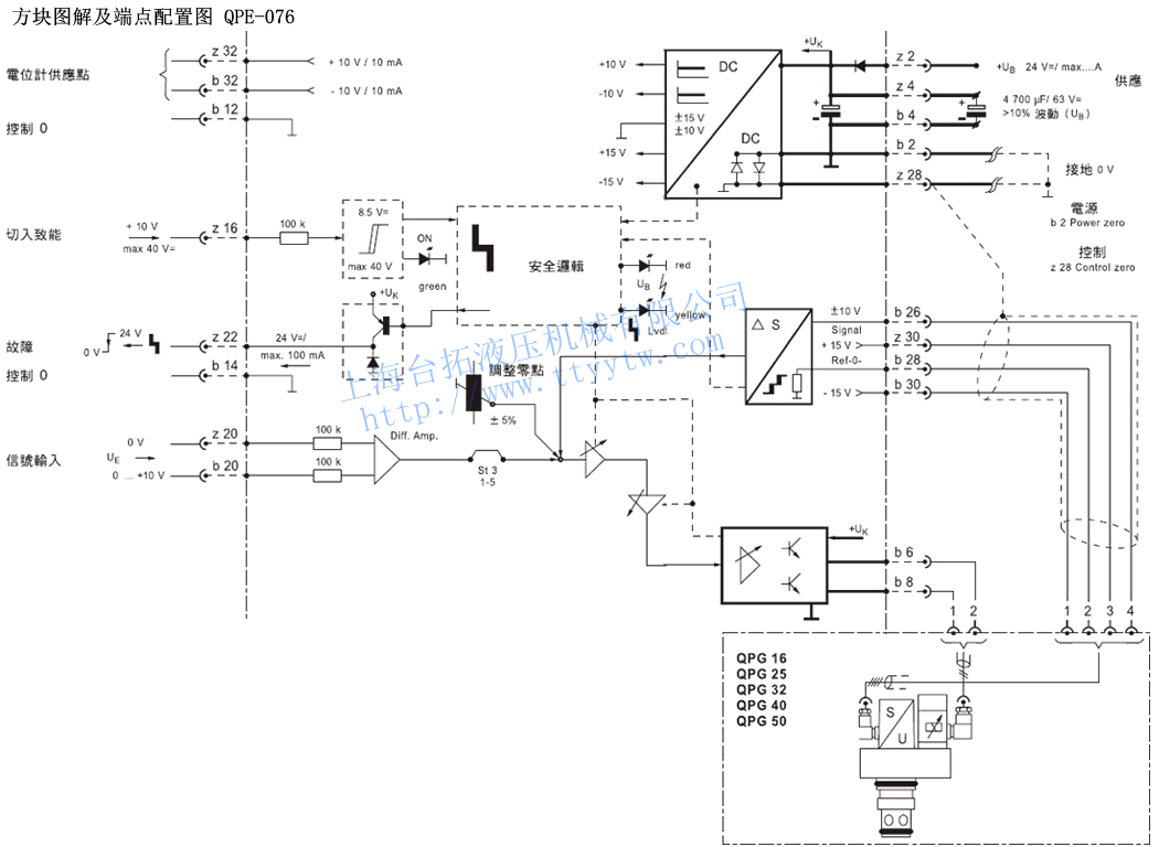 比例閥控制器-印刷電路板QPE-076方塊圖解及端點配置圖