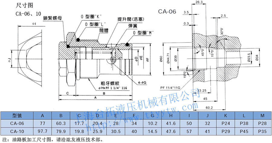 螺紋式插裝單向閥CA系列有如下型號:CA-06-0.5,CA-06-20,CA-10-0.5,CA-10-20。