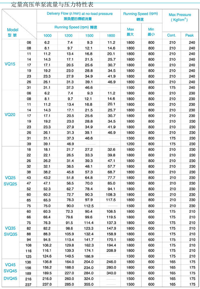 定量高壓單泵VQ15~VQ45規格表