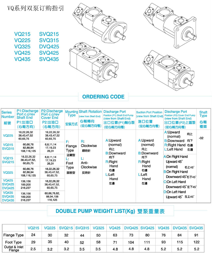 凱佳KCL定量高壓雙泵VQ215~VQ435