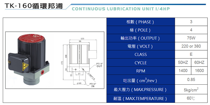 循環(huán)泵浦TK-160相數(shù)3 4級輸出功率75W,220V或380V。