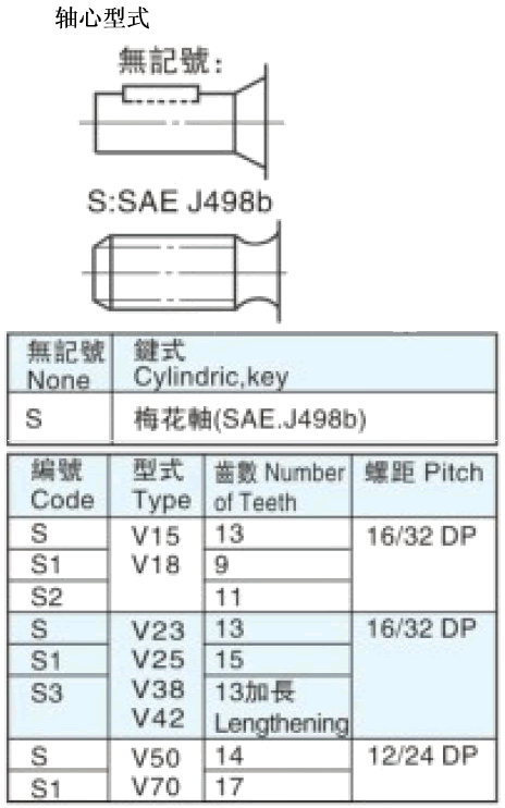 兩孔型1001 變量柱塞泵V15~V70規格表