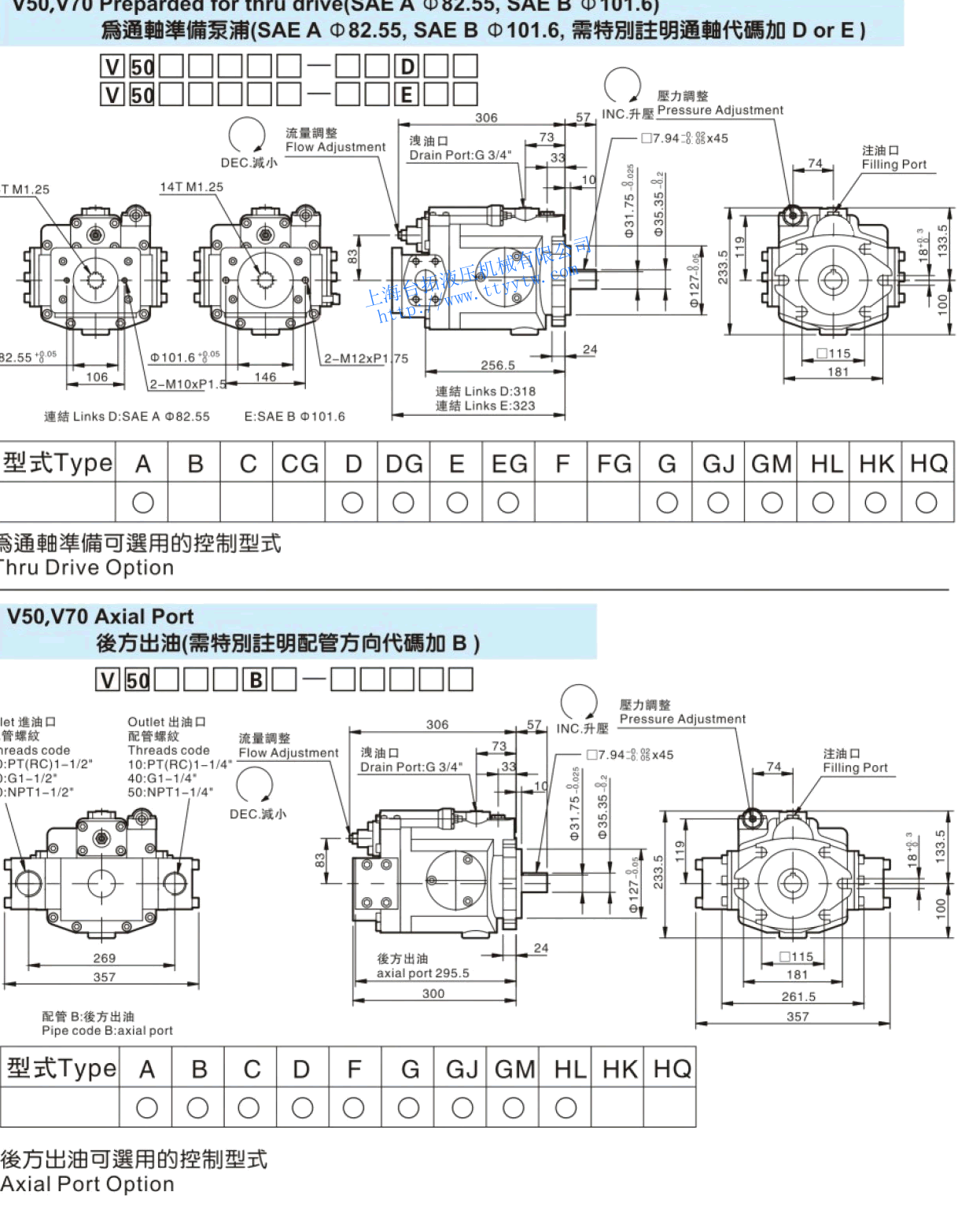 變量柱塞泵V50A,V70A尺寸圖下載 變量柱塞泵V50B,V70B尺寸圖下載