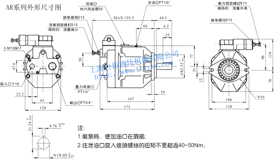 變量柱塞泵AR適用于中壓16MPa以下場合。可直接與電動馬達連接。