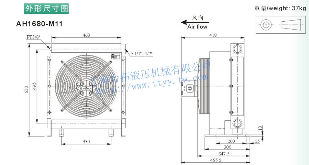 風冷機AH1680-M11外形尺寸圖下載 風冷機AH1890-M11外形尺寸圖下載