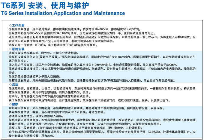 高壓葉片泵T6系列安裝使用與維護(hù)