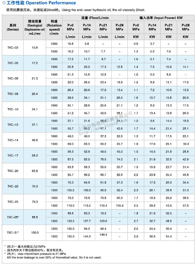 高壓葉片泵T6系列技術(shù)參數(shù)