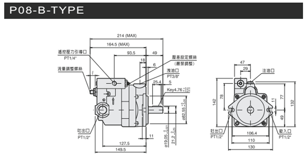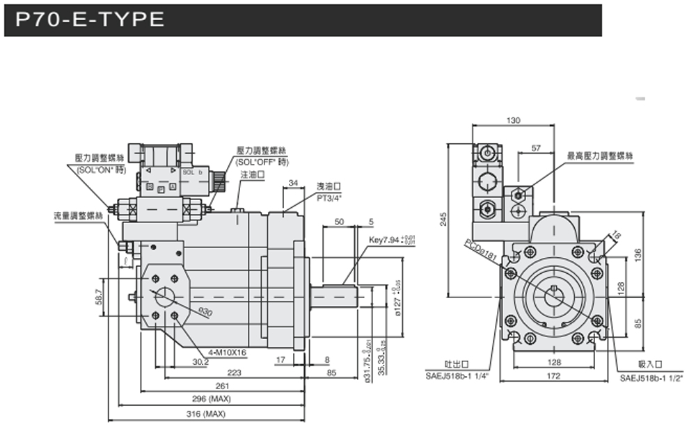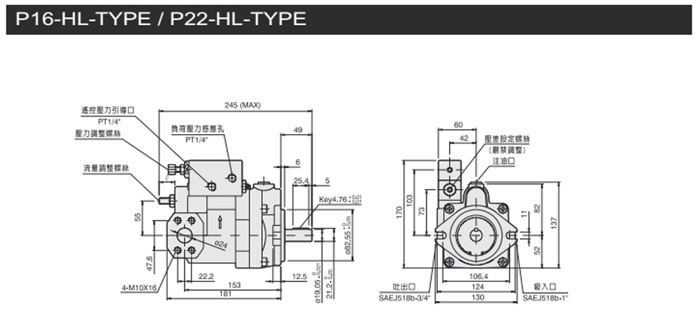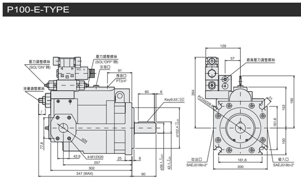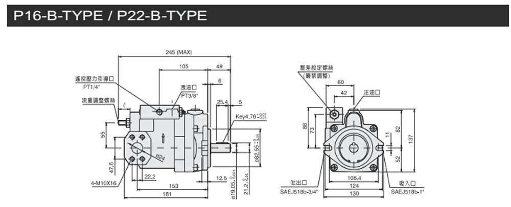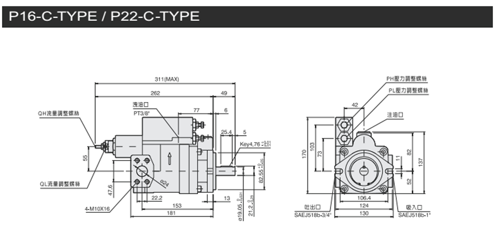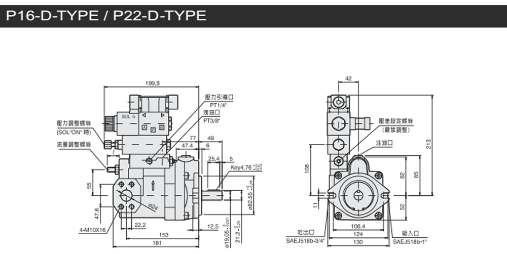 S:SAE花鍵01 變量柱塞泵P08~P100規格表