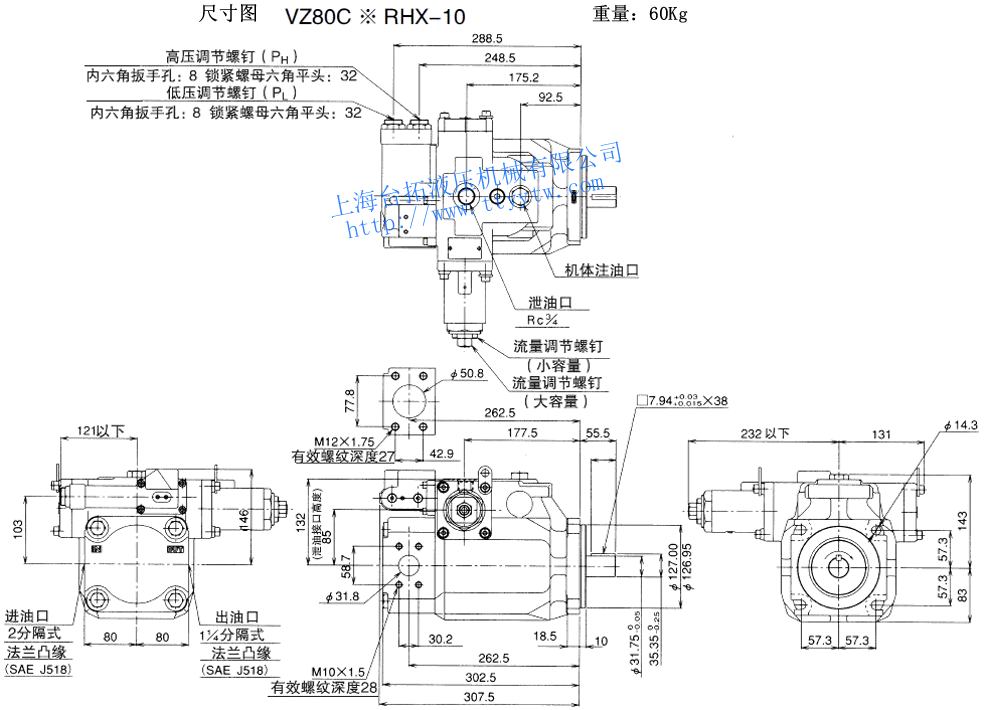 變量柱塞泵VZ80C*RHX-10尺寸圖下載 變量柱塞泵VZ80C**RJ*X-10尺寸圖下載