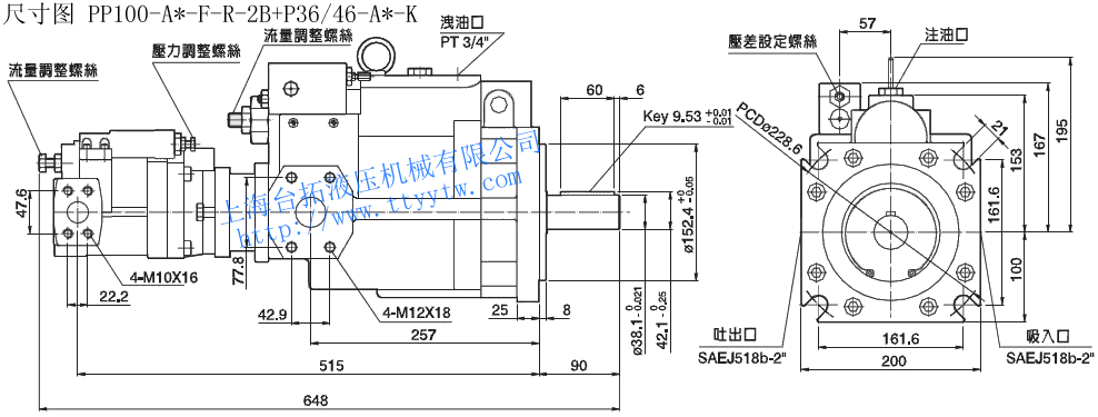 (PP70+P36/46, PP100+P36/46)雙聯變量柱塞泵(后蓋側泵)型式規格