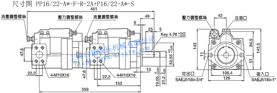 雙聯變量柱塞泵PP16/22-A*-F-R-2A+P08-A*-S尺寸圖下載 雙聯變量柱塞泵PP16/22-A*-F-R-2A+P16/22-A*-S尺寸圖下載