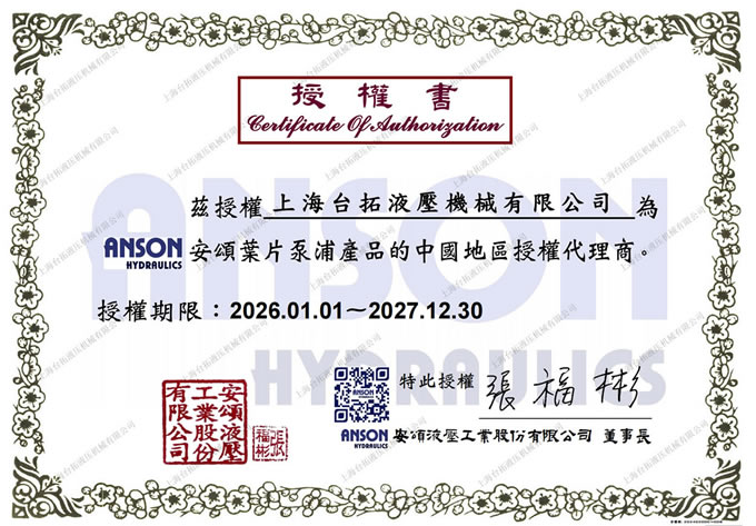 中國臺灣安頌ANSON授權代理證書